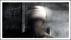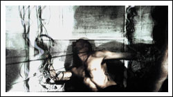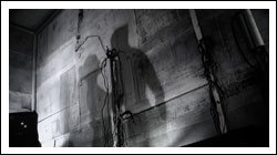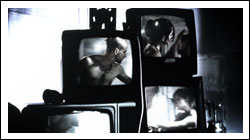 The tv-tower sequence. Having been tied up with wires for hours for the opening sequence our actor enjoys freedom of movement.